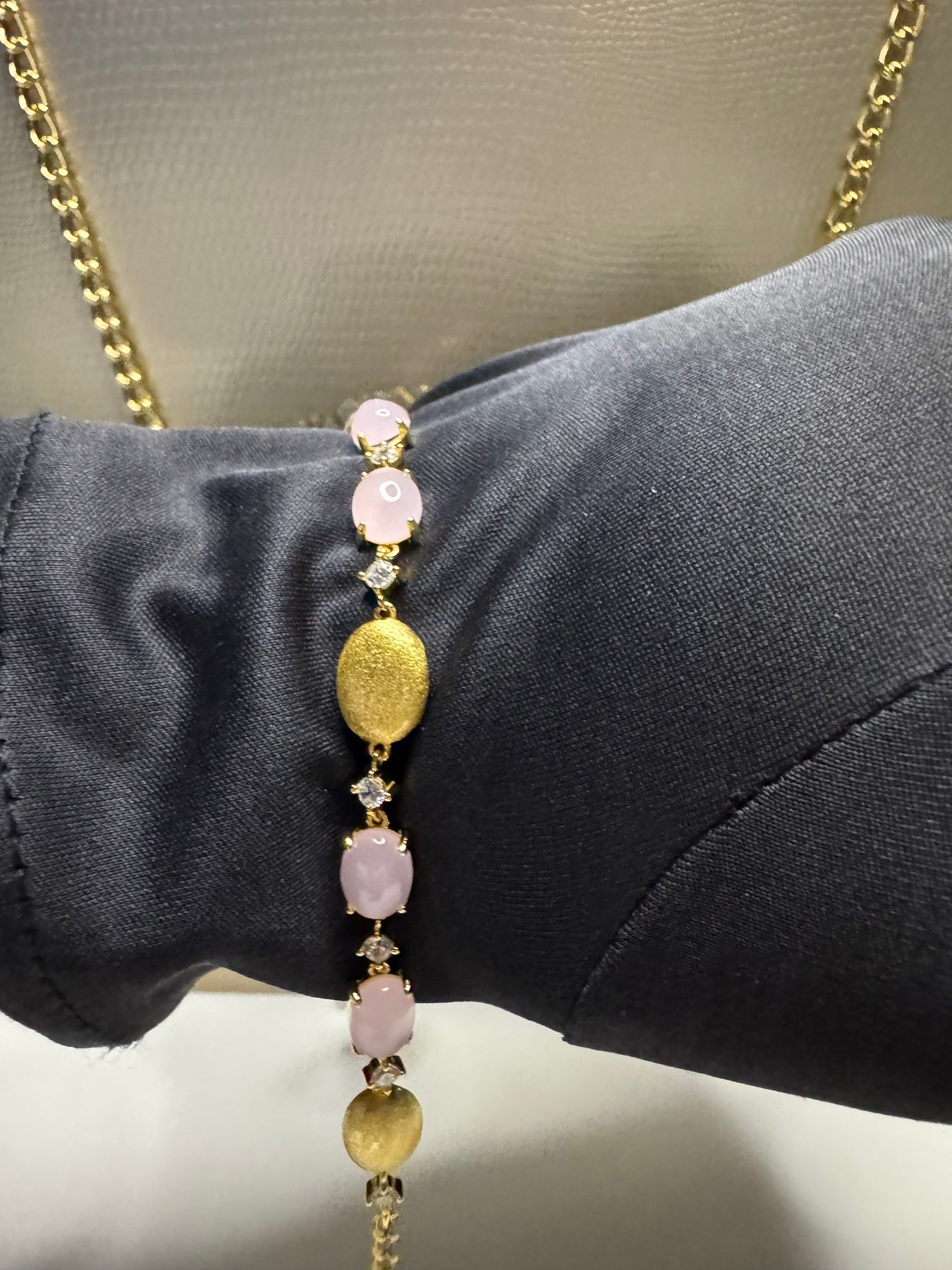 Bracciale realizzato in argento 925 di alta qualità, impreziosito da zirconi rosa che donano luminosità e un delicato tocco di colore. Il design raffinato ed equilibrato valorizza il polso con eleganza e femminilità, rendendolo ideale sia per l’uso quotidiano che per le occasioni speciali.