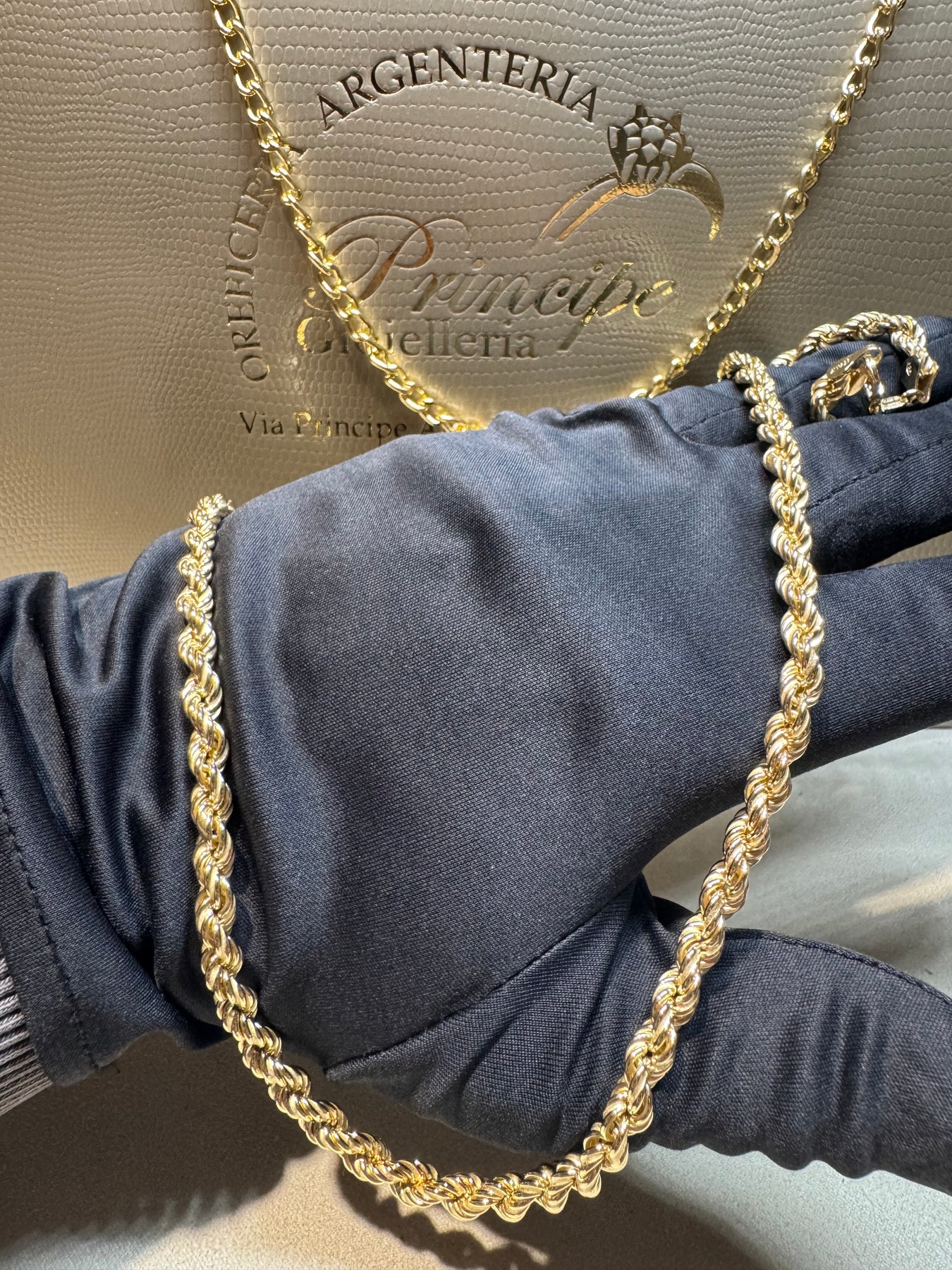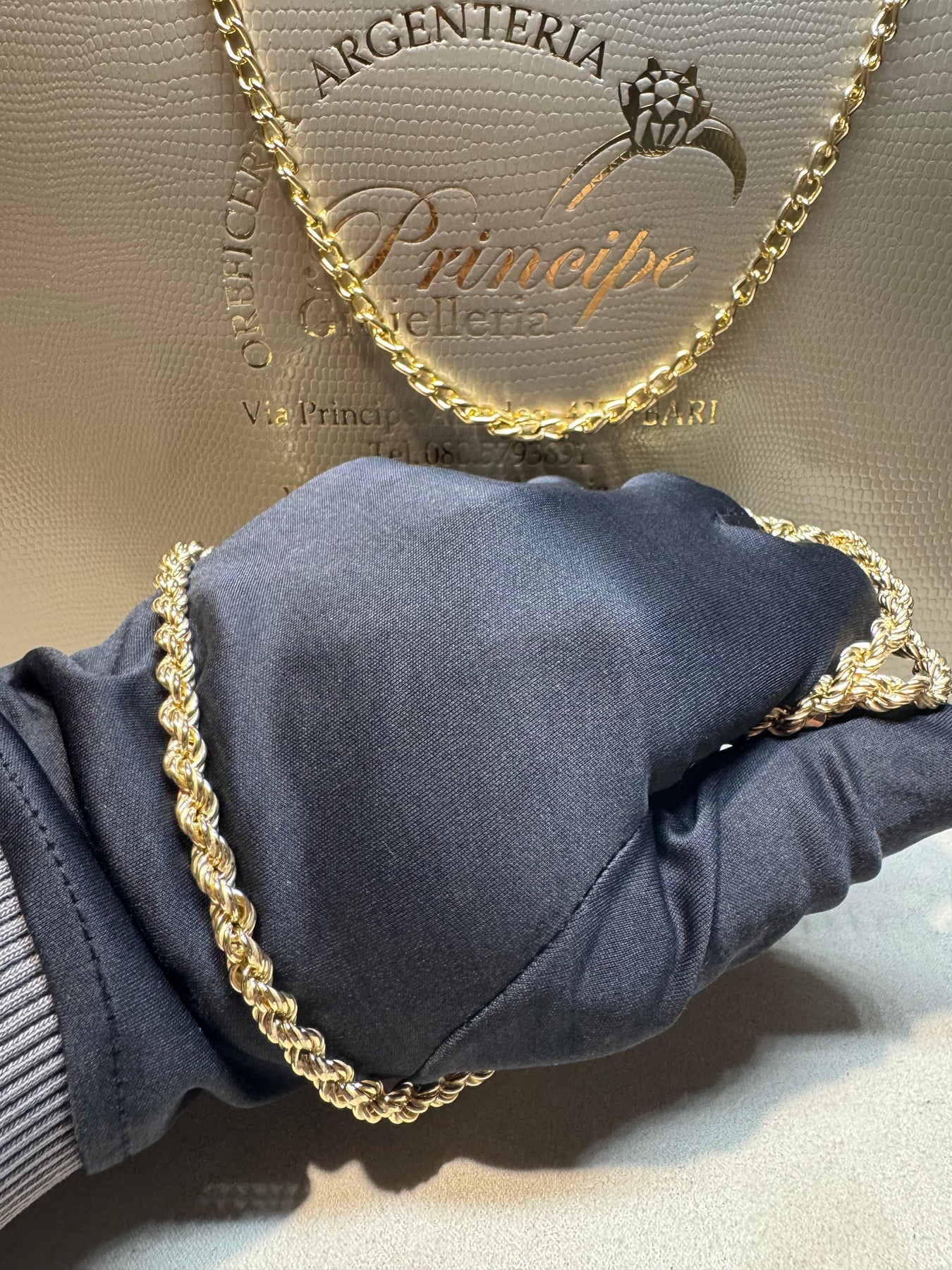 La catena a fune è un modello di collana caratterizzato da anelli intrecciati tra loro in modo tortile, che creano un effetto simile a una corda Bellissima brillantinata con una chiusura sicurissima e siamo sui 20.70 kg di argento
