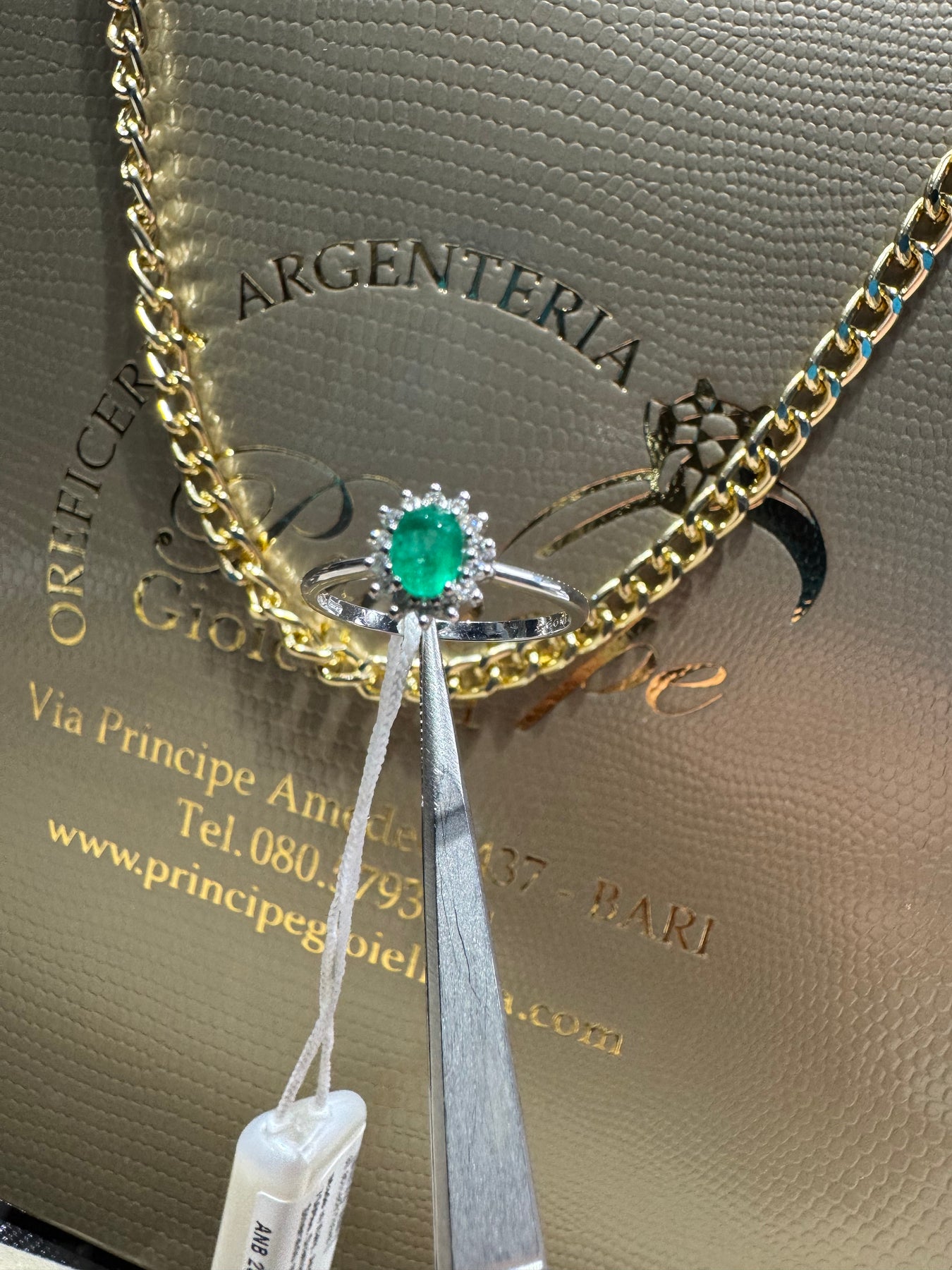 Anello realizzato in oro 18kt con smeraldo e diamanti naturali top quality .