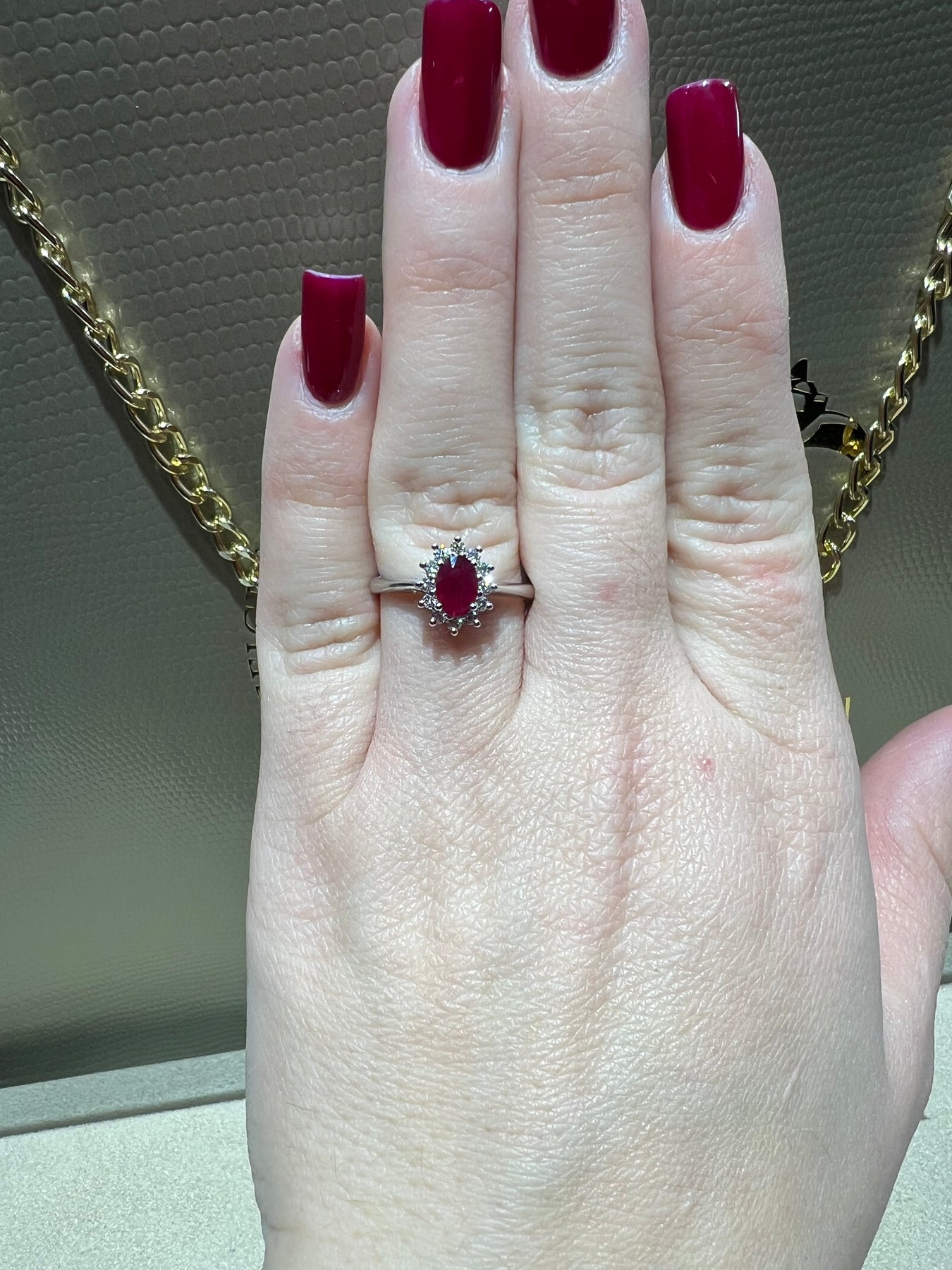 Anello realizzato in oro 18kt certificato con rubino e diamanti naturali certificati