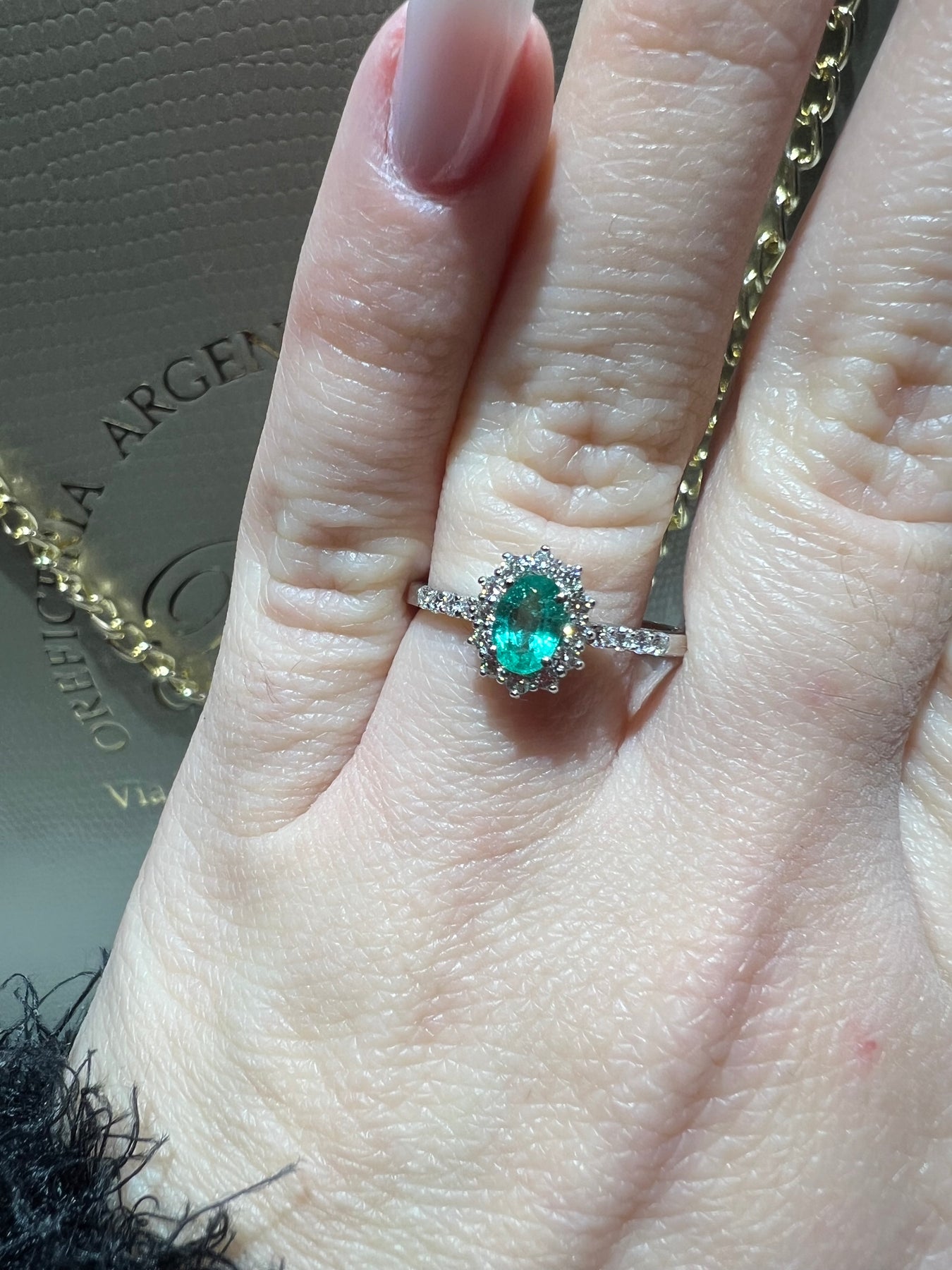 Anello realizzato in oro 18kt certificato con smeraldo e diamanti naturali certificati