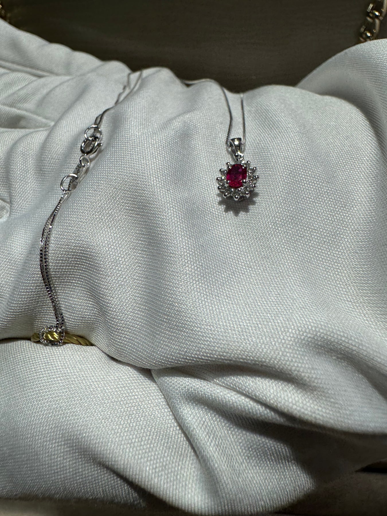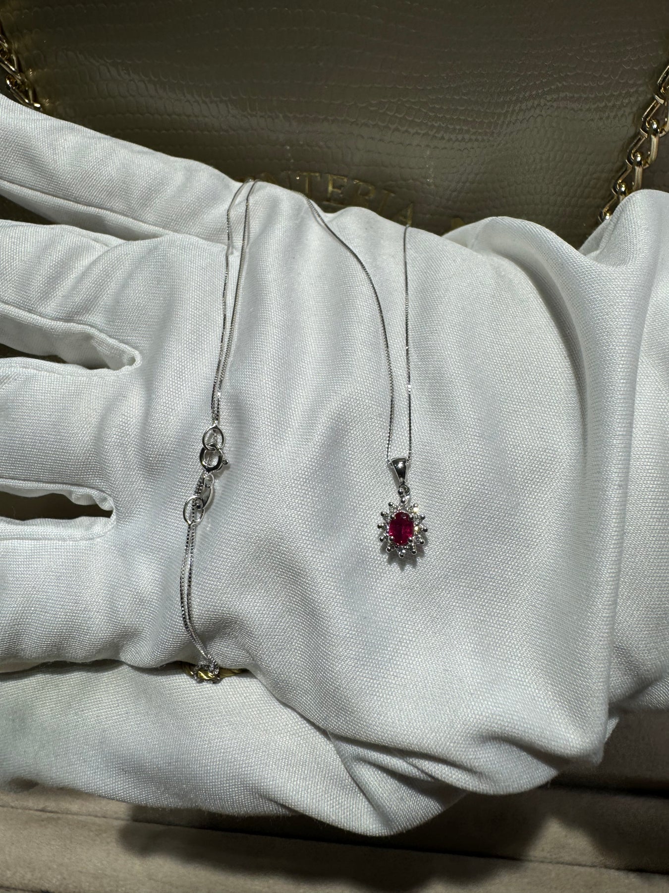 Collana realizzata in oro 18kt certificato con rubini e diamanti naturali certificati