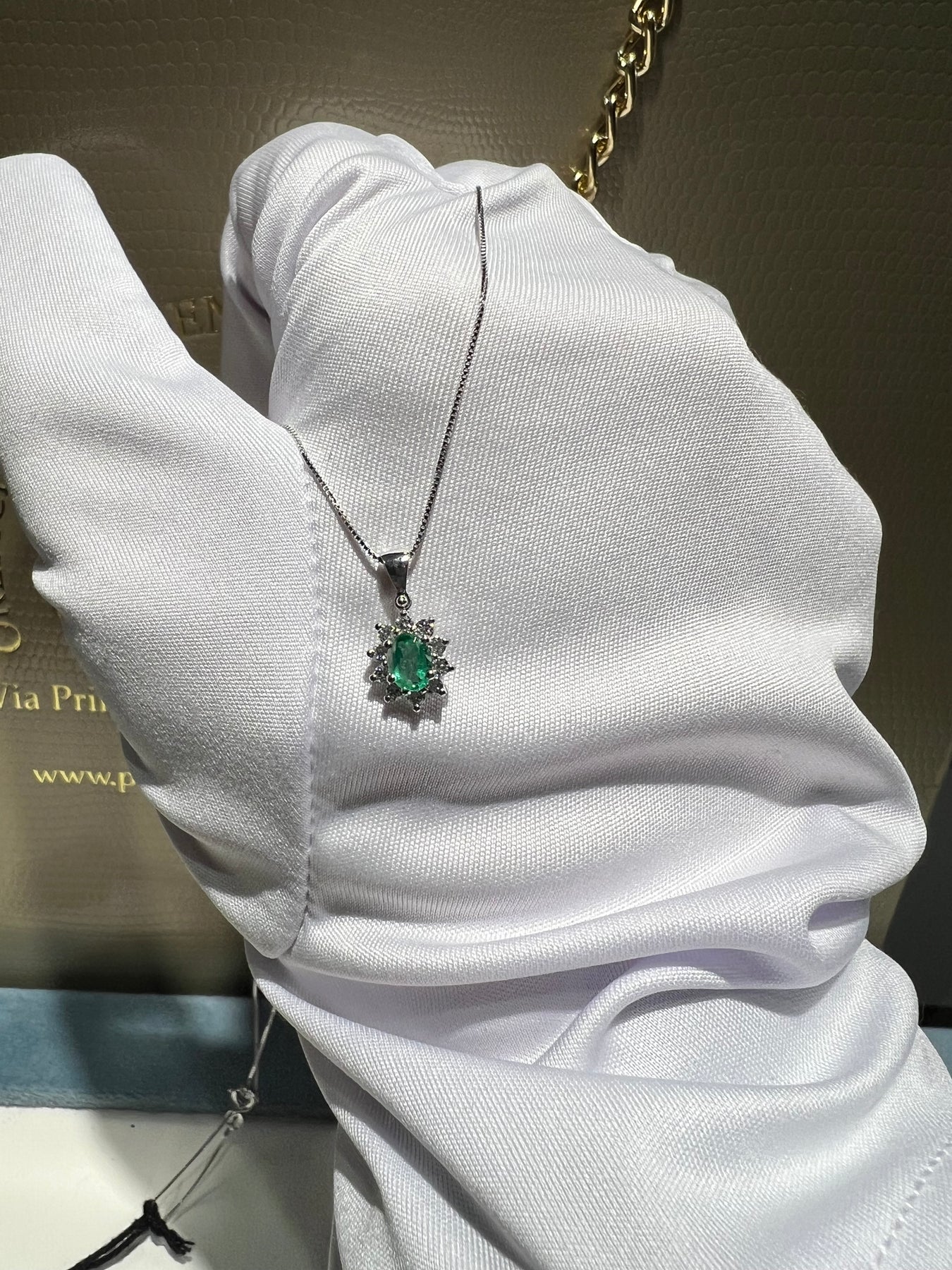 Collana realizzata in oro 18kt certificato con smeraldi e diamanti naturali certificati
